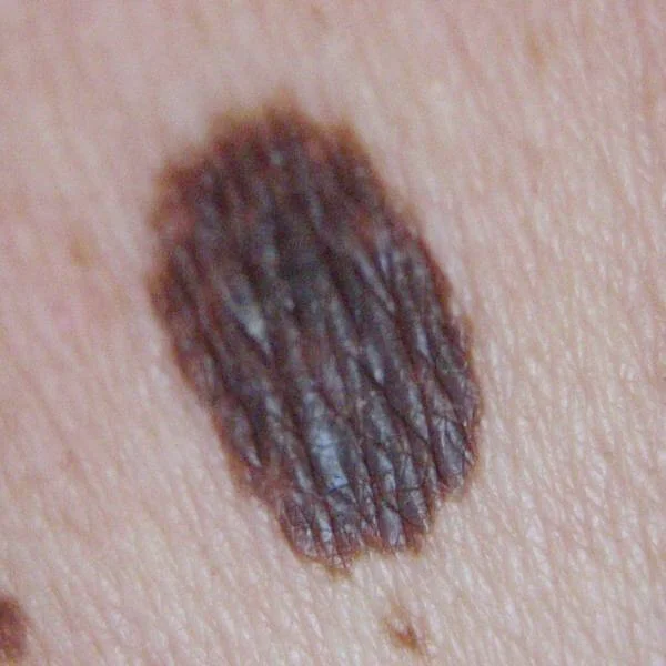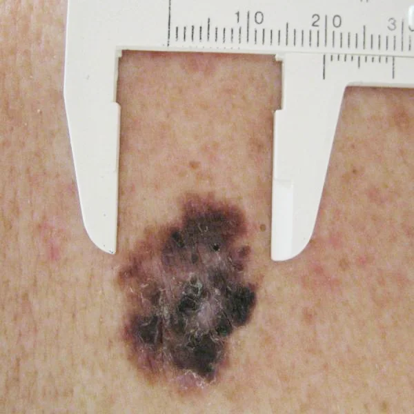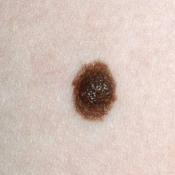 Een gezonde moedervlek is meestal rond of ovaal. Bij een melanoom ontstaat vaak een vorm die niet gelijkmatig is verdeeld. Let op: